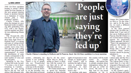 Press Coverage: CNJ Intro Interview with Charlie Clinton, Holborn & St Pancras Parliamentary Candidate